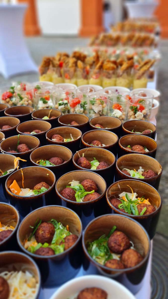 Wir beliefern Events mit bis zu 500 Gästen und sorgen mit verlässlicher Logistik, geschulten Teams und regionalen Zutaten für konstante Qualität. Ihr Vorteil: Ein erfahrener Catering-Service, der auch bei größeren Abläufen ruhig und präzise bleibt.